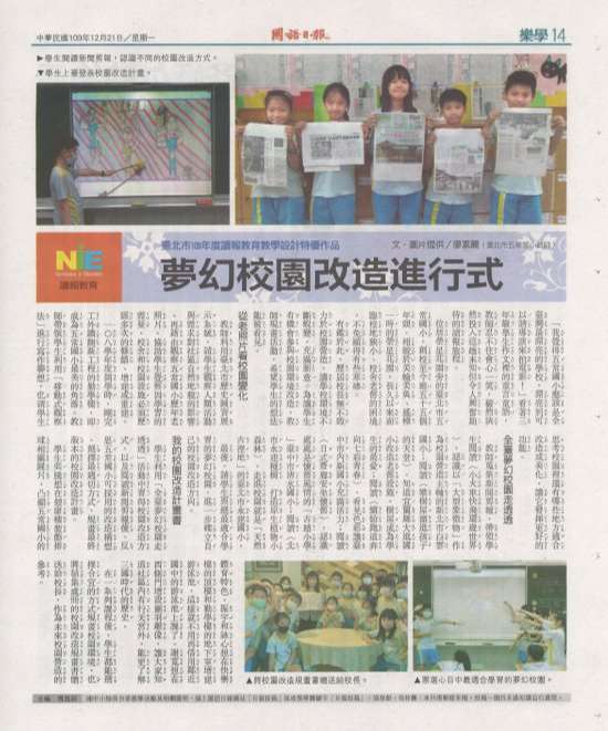 賀!!!廖素麗老師"臺北市109年度讀報教育教學設計特優作品-夢幻校園改造進行式"