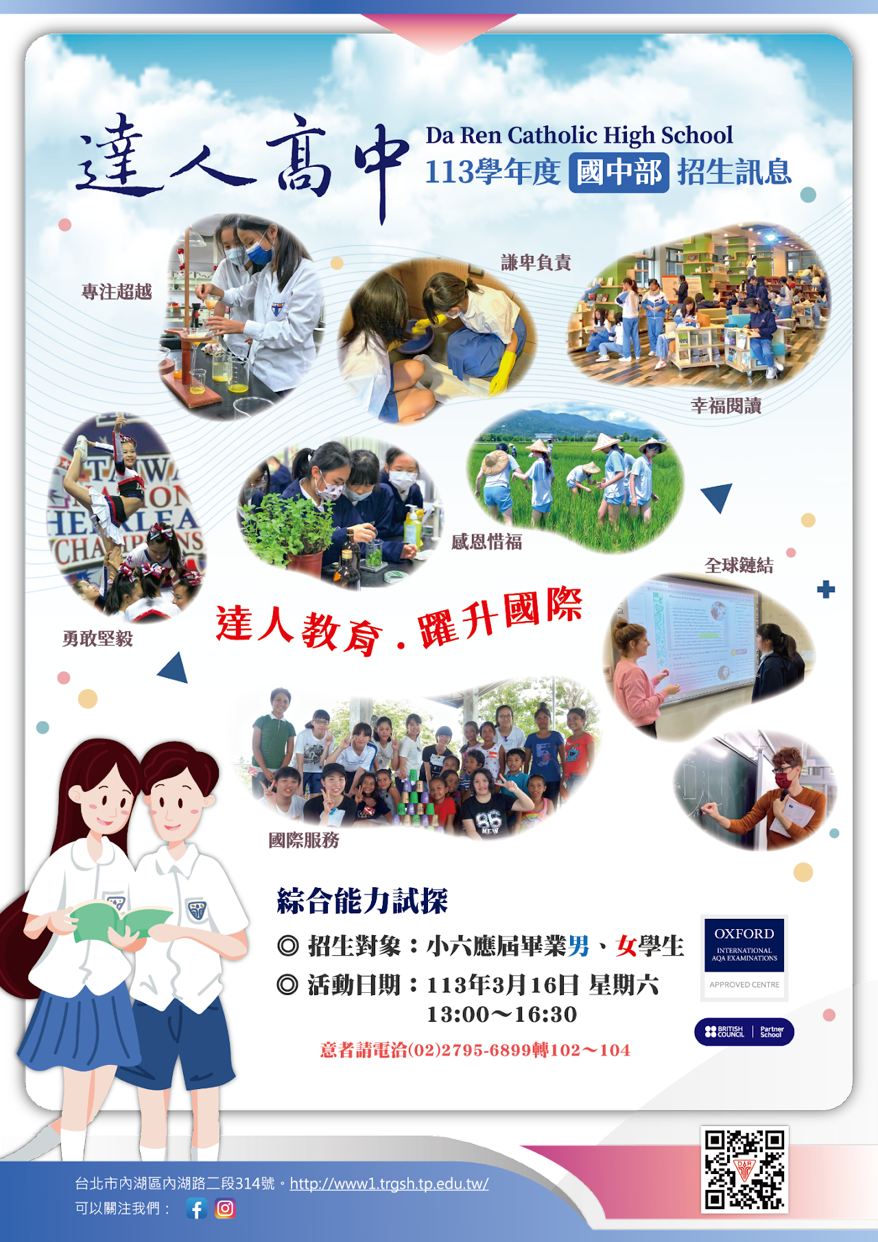 三、本校新生家長說明會及七年級新生綜合能力探索活動相關 訊息及說明均上載於本校網站,網址為http://www1. trgsh.tp.edu.tw,請貴校惠允協助將本活動訊息網路公告 周知,並鼓勵六年級學生及家長踴躍報名參加。