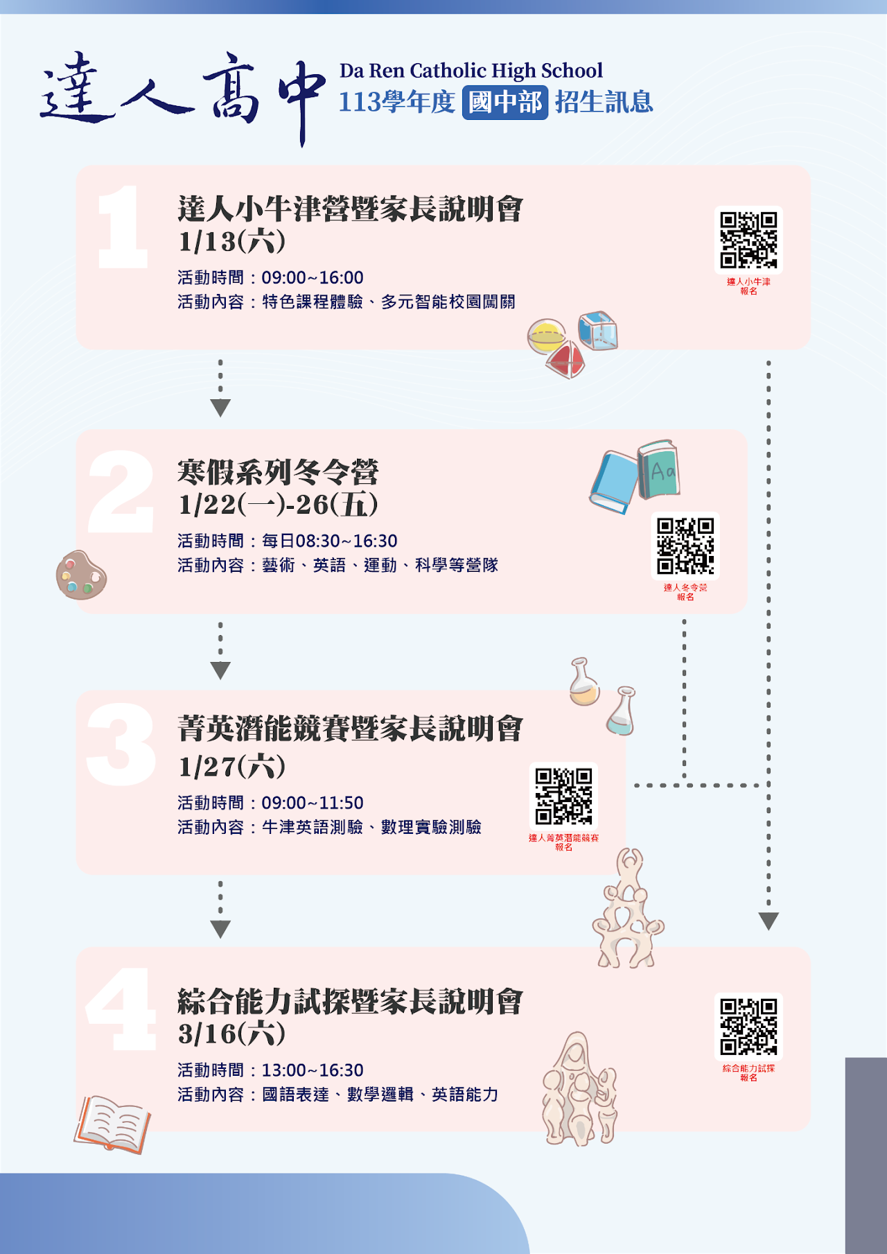 二、本校邀請各國小六年級學生參加七年級新生綜合能力試探 活動,相關事項如下: